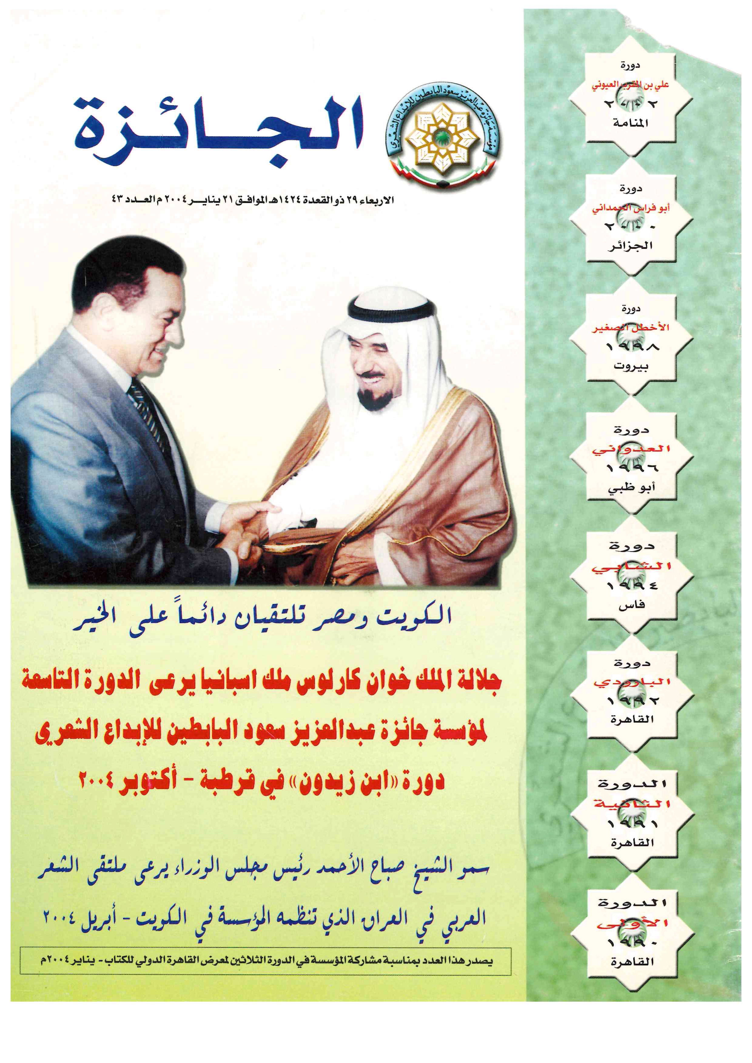 بمناسبة مشاركة المؤسسة الدورة الثلاثون لمعرض القاهرة الدولي للكتاب | العدد الثالث والأربعون | يناير 2004